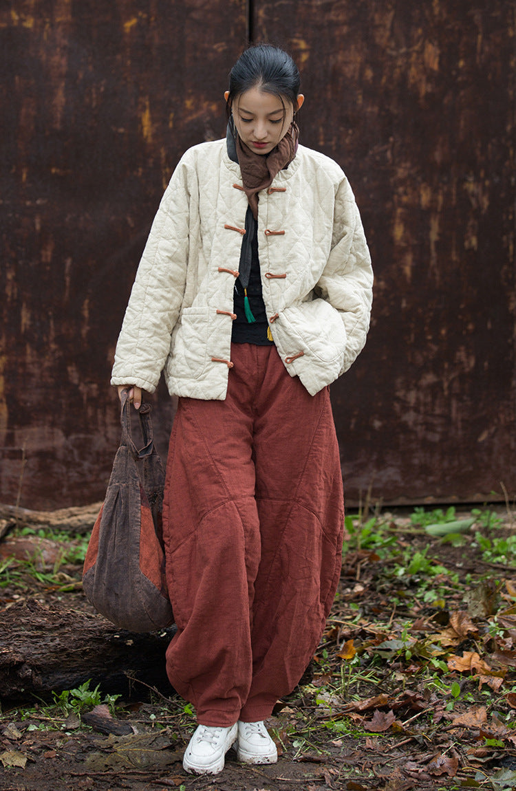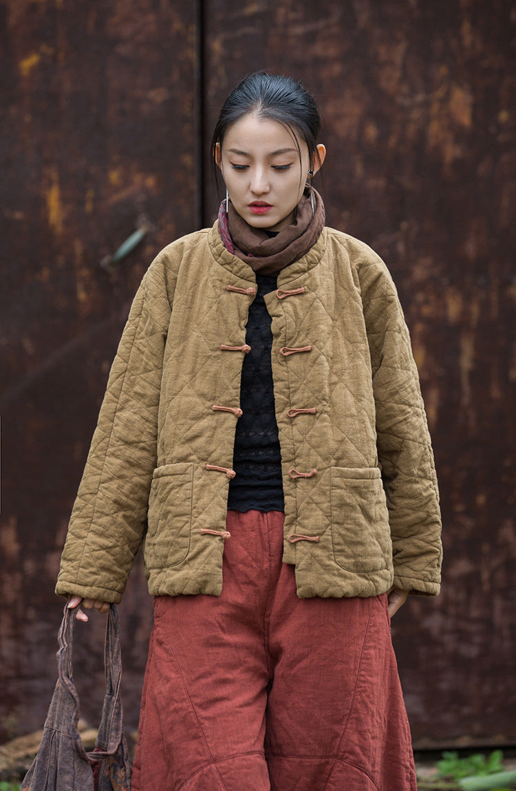 Diamond Quilted Ramie Padded Short Jacket